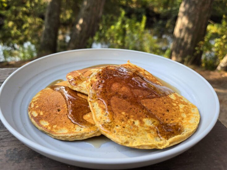 We love making these gluten-free pumpkin pancakes on chilly mornings while camping!