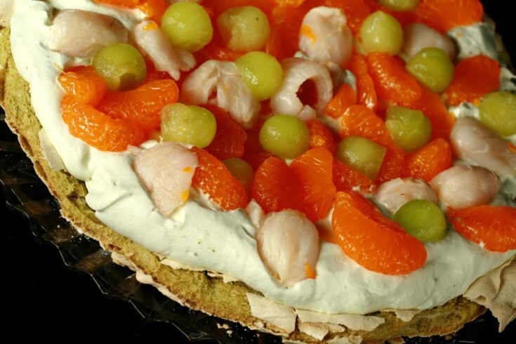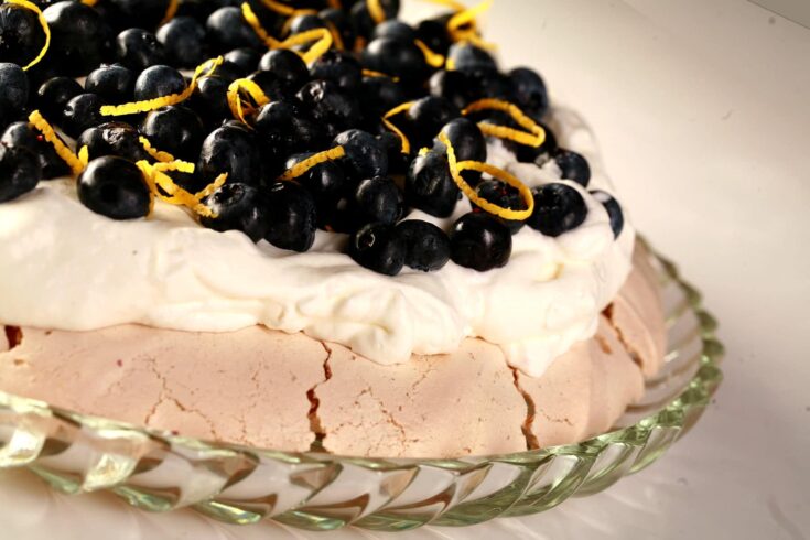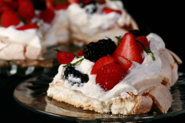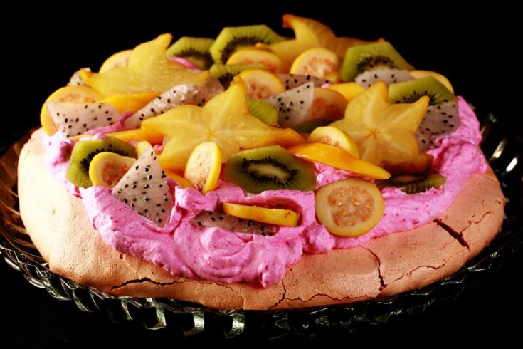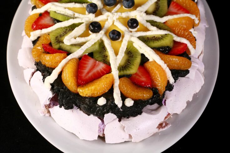 It’s my favourite meringue-based dessert: The outside is crisp any crunchy - like meringue cookies - but with a marshmallow-like center. After the baked meringue cools, the top of the pavlova is piled with whipped cream and fresh fruit.