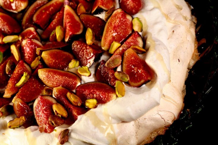 This elegant Cardamom Fig Pavlova is rich with Middle Eastern flavours - cardamom, figs, rose, pistachios, and honey.